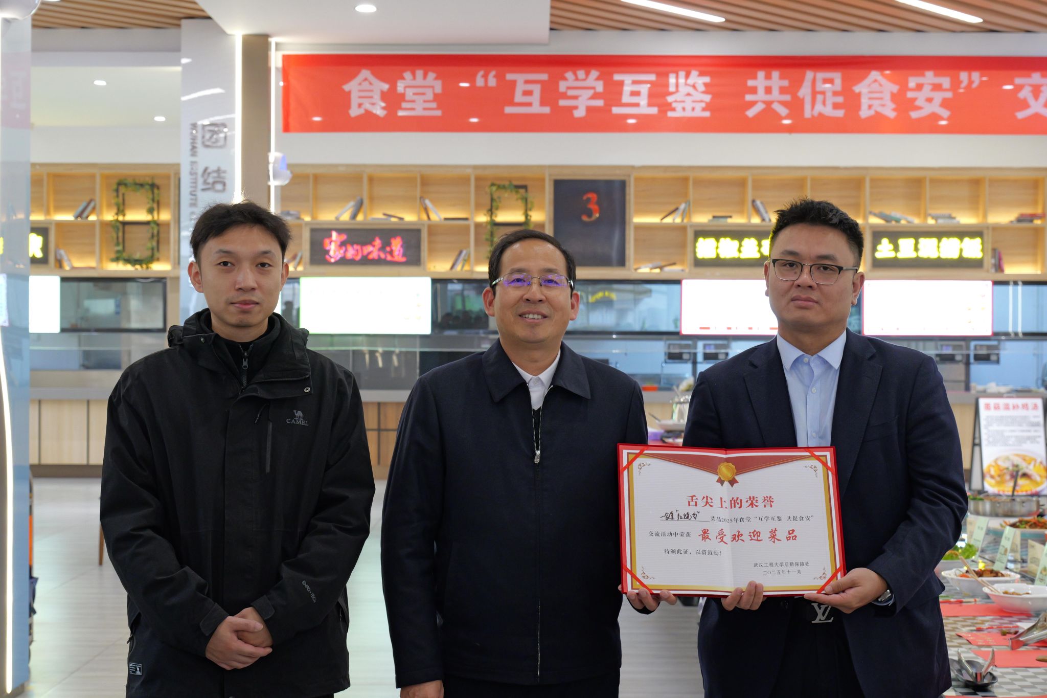 本网讯(通讯员 杨世团)11月21日上午,学校在武昌校区一食堂二楼校史文化长廊组织开展了主题为“互学互鉴、共促食安”的食堂交流活动。校党委常委、副校长马小龙出席活动,党政办、宣传部、学工部、校团委、人事处、校工会、邮电与信息工程学院等单位负责人及两校区学生代表等50余人共同参与。活动中,来自武昌、流芳两校区的5家食堂经营主体现场展示了所用食材与调味品,充分体现的诚信经营理念,展现主动接受师生监督、保障食品安全的服务意识。...