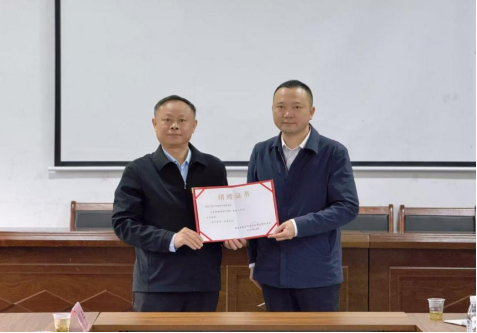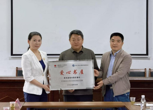 会议上同时举办了学校基金会向老寨村捐建爱心书屋的捐赠仪式。邓新洲代表基金会接受了来凤县党委常委、纪委书记谭剑颁发的捐赠证书。