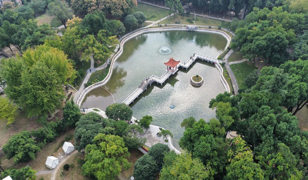 占地4167.27平方米的叠翠湖静卧于武汉工程大学武昌校区书香氤氲之中,北倚庄重典雅的图书馆,湖光与书影相映成趣。湖中廊道蜿蜒连通西北两侧,碧波之上的湖心亭既是往来通行的便捷路径,亦是师生凭栏观景、静思交流的理想空间。自上世纪八十年代初建成以来,书写着校园的灵秀与厚重。历经40余年的“岁月”的沉淀,因常年淤泥、渗水、藻类产生了异味影响了水质,拉低了体验感。