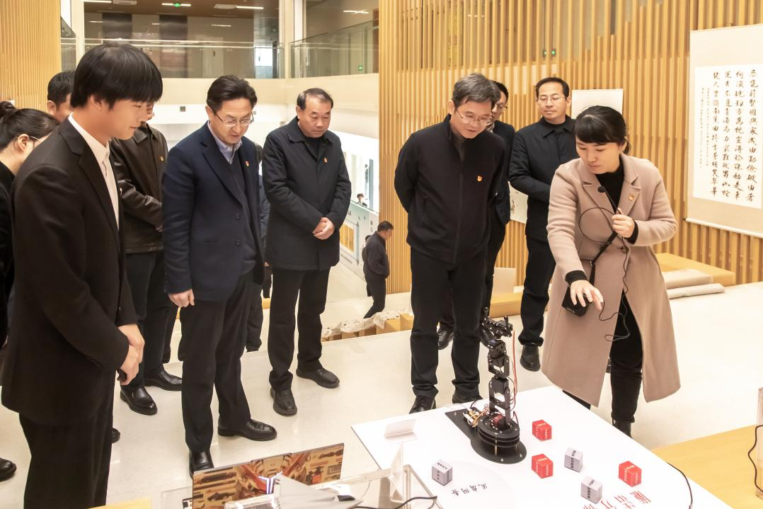 党政办公室、校纪委机关、邮电与信息工程学院领导班子成员一同观展。
