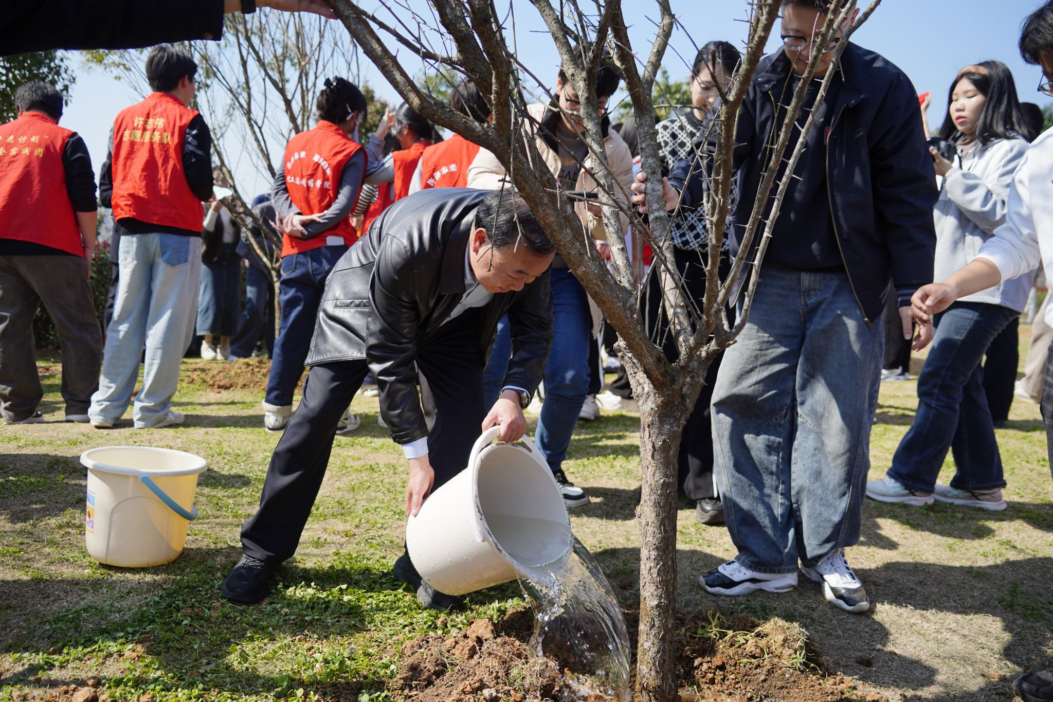 本网讯(通讯员 季凯)春风吐绿,草木初荫,正是植树播绿好时节。3月12日下午,学校在流芳校区凤鸣坡开展“厚植绿色根基 共育青年未来”第48个植树节义务植树活动。校党委副书记、校长张彦铎,校党委副书记李志旭,校党委常委、纪委书记方文海,校党委常委、副校长喻发全,校党委常委、副校长、组织部部长马小龙,副校级干部朱青林出席本次活动,和工大青年一起“植”下希望,收获硕果。