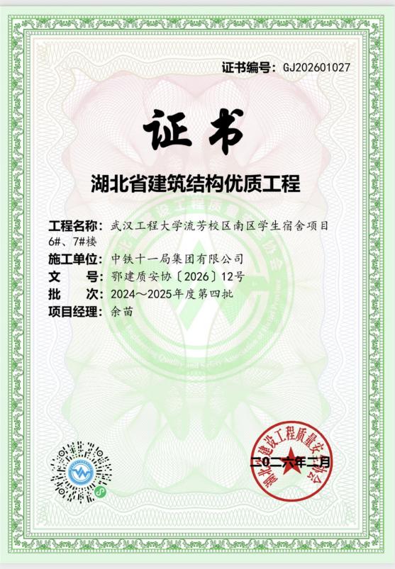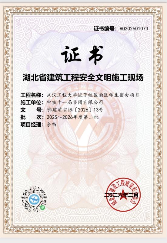 本网讯(通讯员 王子豪)近日,从湖北省建设工程质量安全协会获悉,我校流芳校区南区1、6号学生宿舍项目成功斩获“湖北省建筑工程安全文明施工现场”“湖北省建筑结构优质工程”两项省级荣誉称号。
