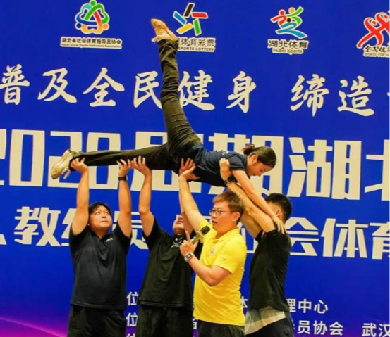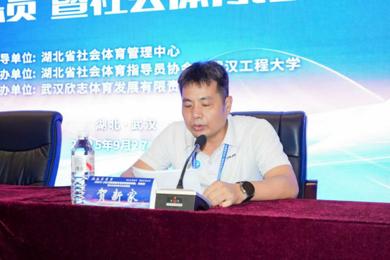 开班仪式由湖北啦啦操项目负责人吴冰主持,湖北省社会体育管理中心党支部书记、主任严汉华,武汉工程大学体育部副主任贺新家出席并讲话。