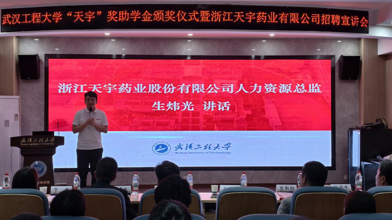 生炜光介绍了企业的发展理念、核心业务领域及人才培养规划,表达了企业对化工制药专业人才的迫切需求,以及与武汉工程大学化工与制药学院持续深化合作的意愿。他鼓励获奖学子坚定专业方向,持续提升综合能力,未来积极投身医药健康产业,在实践中实现个人价值与企业发展的共赢。