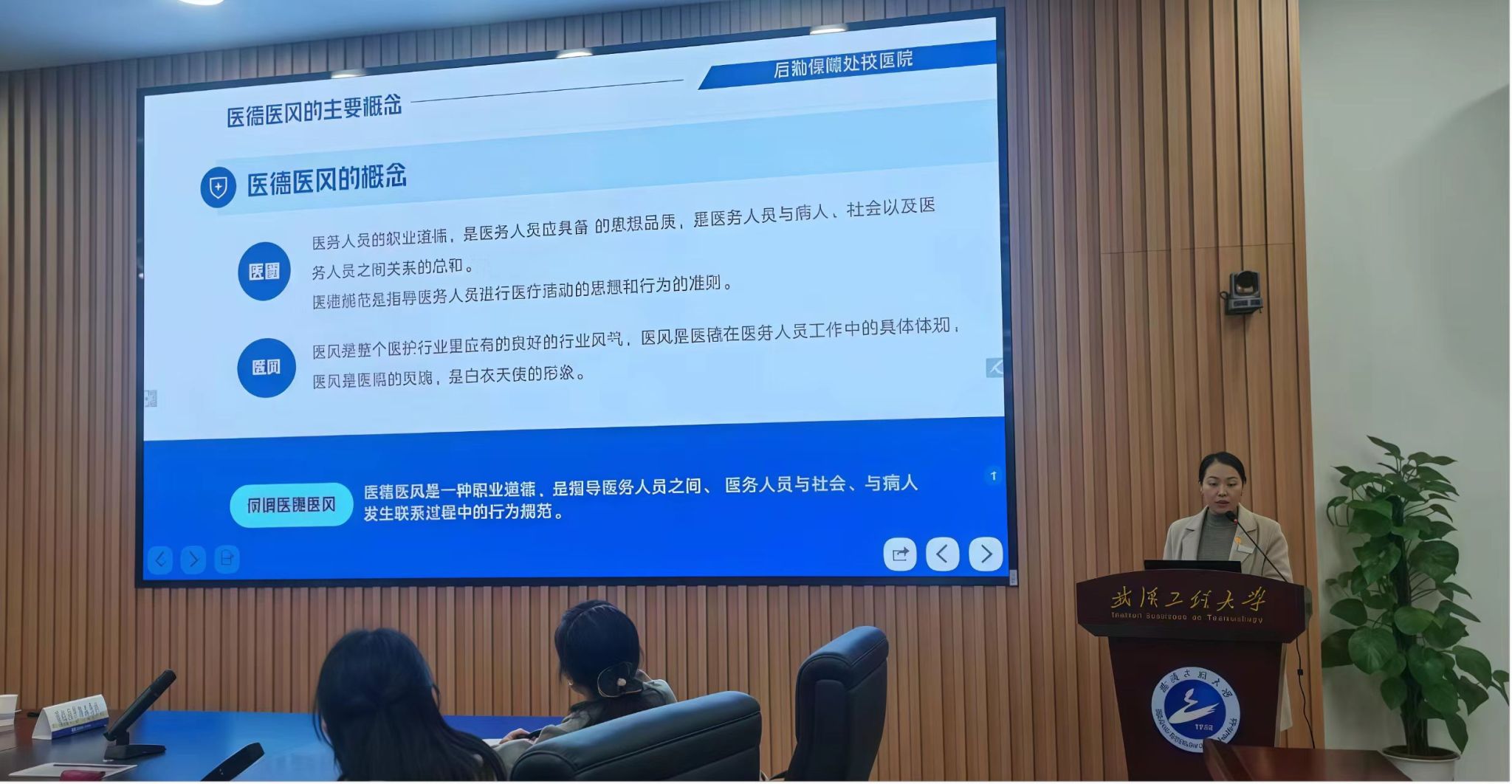 来自临床、护理、检验、检查等不同岗位的校医院职工代表依次发言。他们结合日常工作中的真实案例和切身感受,分享了各自对医德医风内涵的理解与实践。代表们的发言情真意切,展现了校医院职工队伍的主流精神风貌和不断提升自我、服务师生的内在动力。