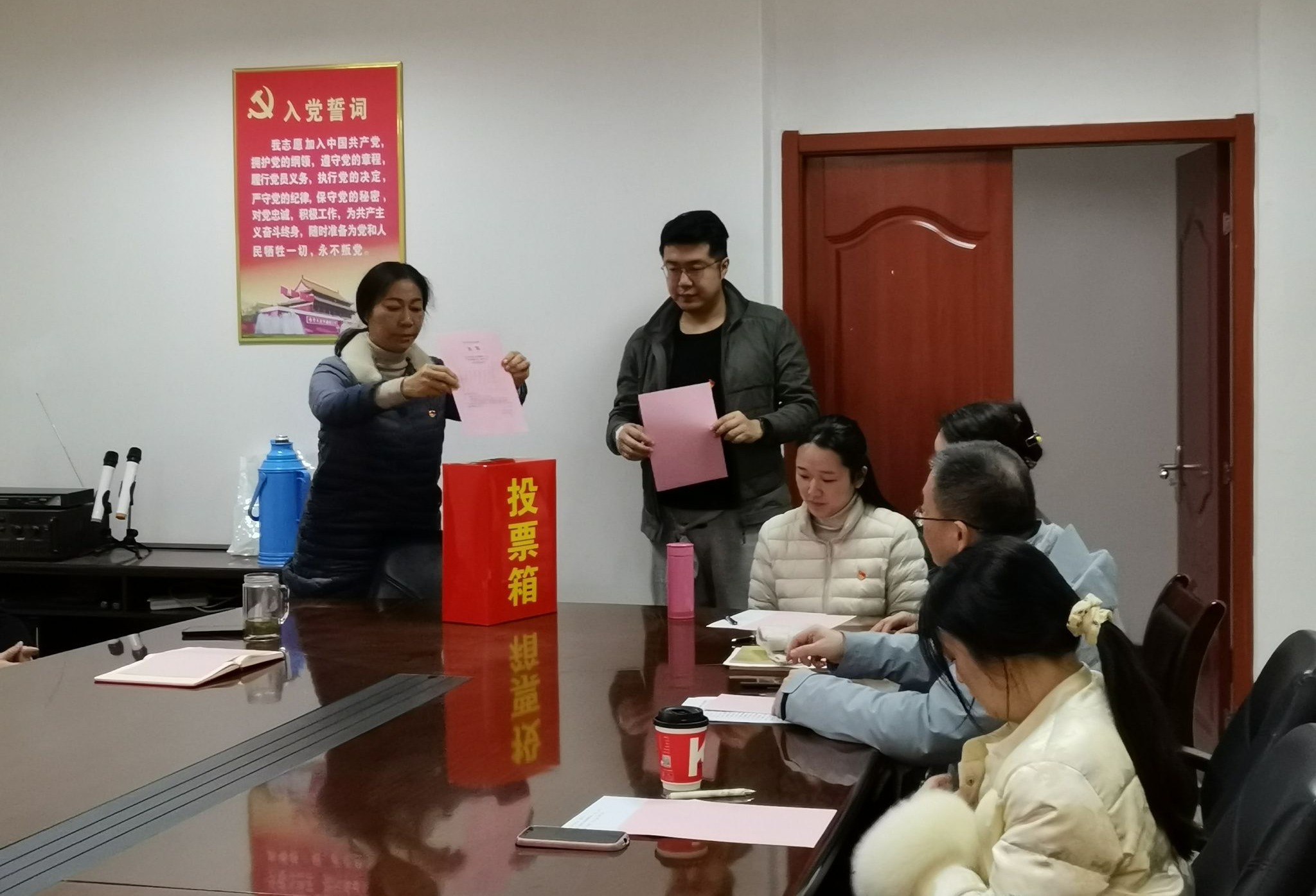 党员大会之后,图书馆新一届委员会在流芳馆五楼会议室召开了第一次全体会议,选举产生党总支书记。经过无记名投票和计票环节,曹迅飞全票当选图书馆党总支书记。会议研究并明确了各委员分工。
