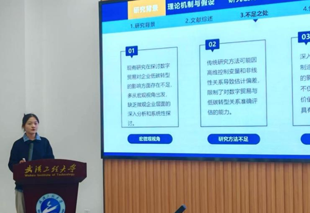 本次报告会紧扣学科发展前沿与国家战略需求,采用“线上+线下”融合模式,最大化拓展交流覆盖面。法学组覆盖国际法学、民商法学等四大专业方向,14支团队针对数字法治、涉外法务、社会福利保障等议题深入探索,研究内容既涵盖传统学科的创新发展,又回应新兴领域的现实诉求;金融组聚焦绿色金融、数字经济等热点,24支团队围绕制造业低碳转型、减污降碳协同、养老金融发展、省域OFDI绿色化等主题展开研讨。