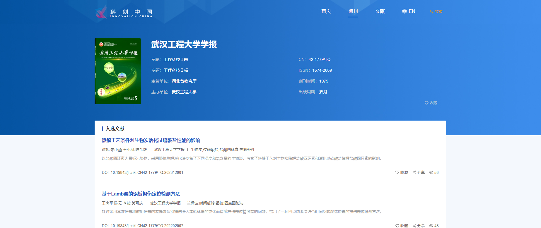 本网讯(通讯员 张媛媛 张瑞)近日,“2025年度科技期刊双语传播工程”公布遴选结果。《武汉工程大学学报》(简称《学报》)共有21篇文献成功入选,并在“科创中国”网站正式上线展示与宣传推广。