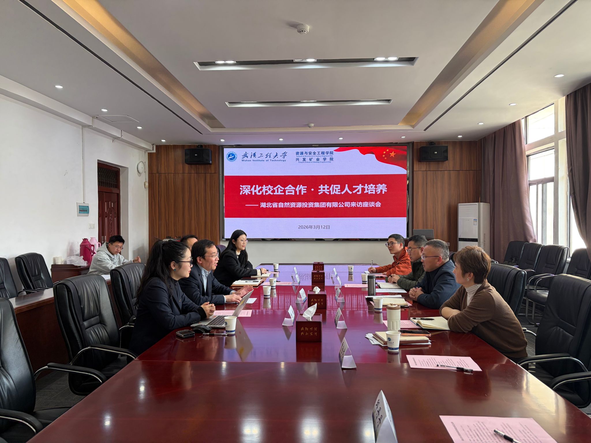本网讯(通讯员 黄橙)3月12日下午,湖北省自然资源投资集团有限公司总会计师马志伟一行来校调研,与兴发矿业学院资源与安全工程学院举行座谈交流。