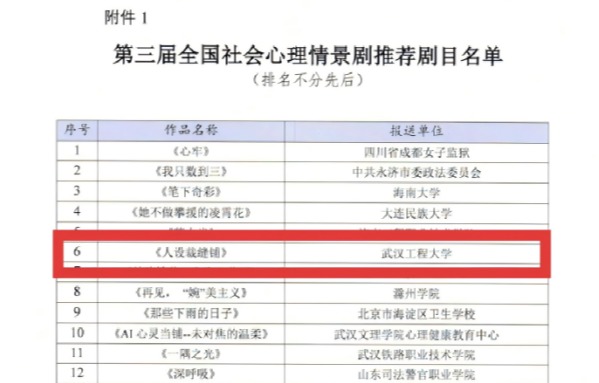 本网讯(通讯员 雷辉)近日,由国家心理健康和精神卫生防治中心、中国人口文化促进会联合举办的第三届全国社会心理服务情景剧展演活动评审结果揭晓,我校选送的心理情景剧《人设裁缝铺》成功获评全国推荐剧目。