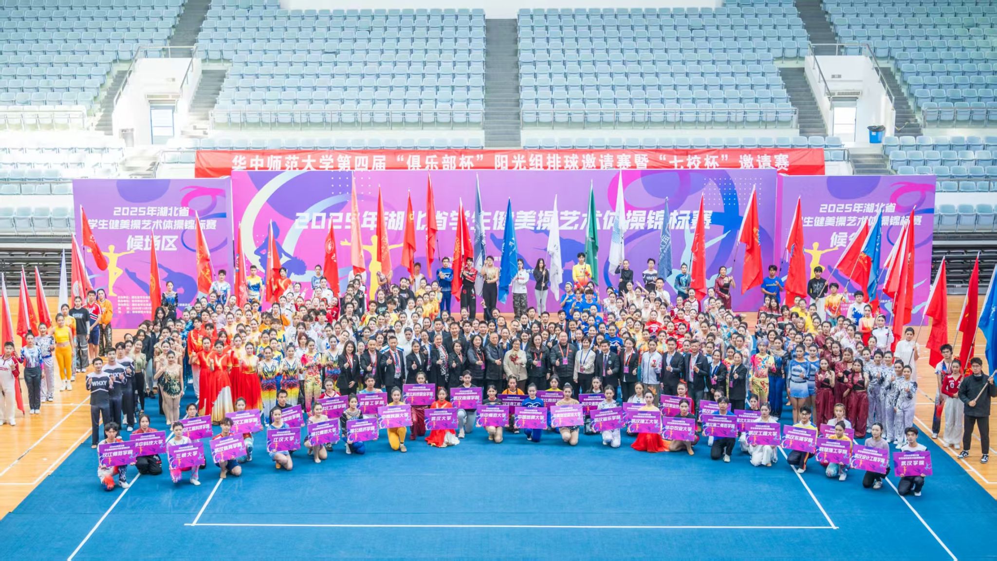 本网讯(通讯员 郭冉冉)12月5日至7日,由湖北省学生体育协会主办、华中师范大学承办的2025年湖北省学生健美操艺术体操锦标赛在华中师范大学举行。本次赛事吸引了来自全省105所大中小学的1737名选手同台竞技,在健美操、艺术体操、啦啦操、健身操舞、校园课间操等多个项目中展开激烈角逐,生动演绎了体育与艺术的力与美融合。我校派出了由来自不同学院的16名同学组成的代表队,参加了本届比赛的排舞项目。