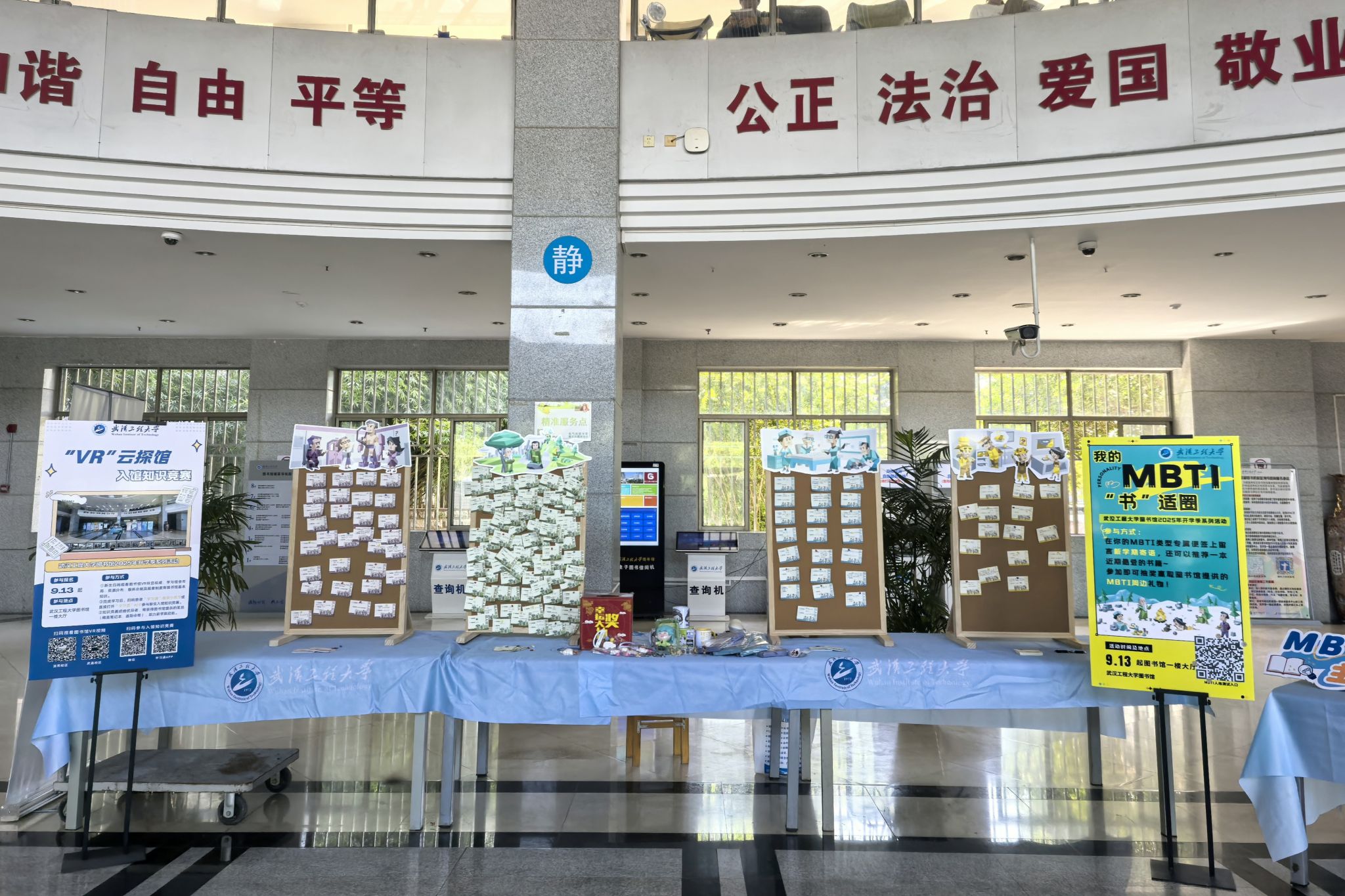 本学期伊始,图书馆以“我的‘书’适圈”为主题,发起了一场荐书征集活动。馆内大厅专题征集点通过四色主题展板、定制便签和MBTI定制周边吸引学生参与。同学们踊跃留言,根据自身人格类型推荐宝藏书籍并写下推荐理由,活动共收到近400条有效荐书信息。同一颜色即同一性格群体中的学生,在推荐书籍时表现出了相似的偏好。图书馆经过整理和筛选荐书信息,最终采购了近百本图书,将学生直接的阅读需求迅速转化为馆藏资源的补充。