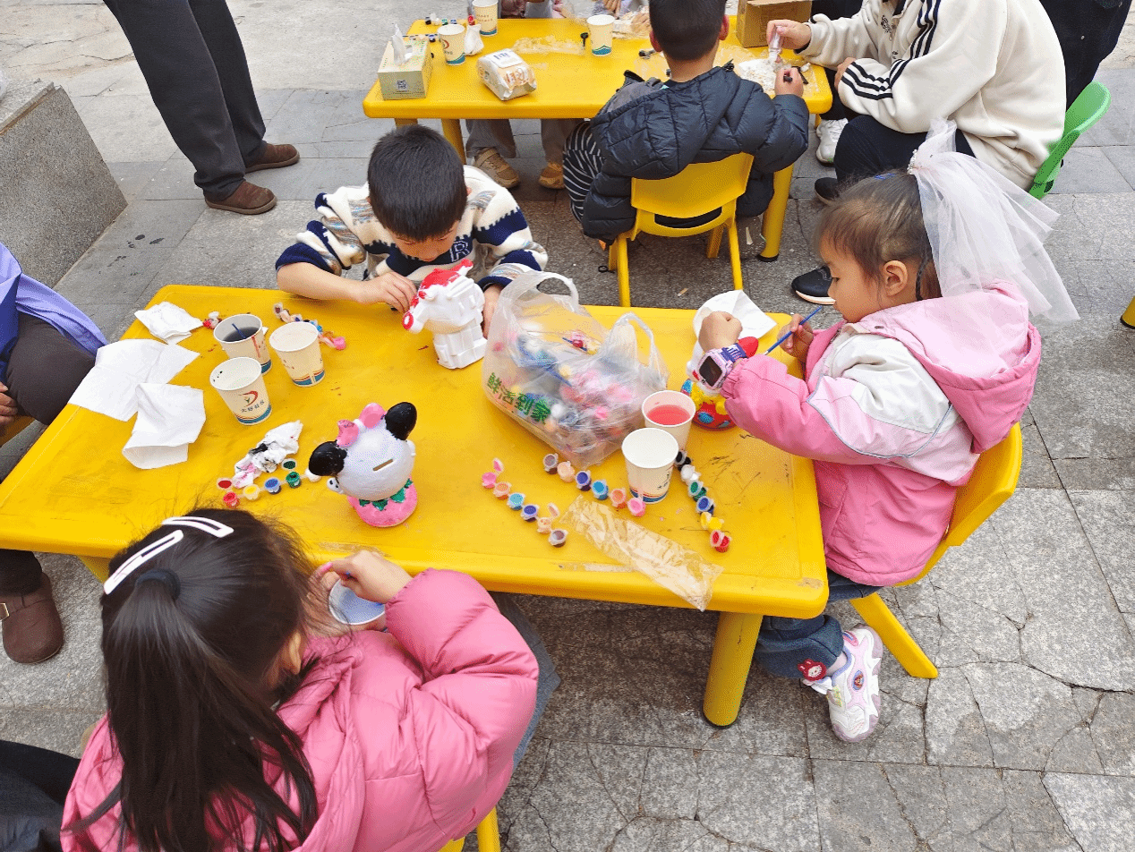 在玩偶涂鸦区域,志愿者为孩子们分发空白玩偶与颜料画笔,鼓励大家大胆配色、尽情创作,充分发挥想象力为自己的玩偶上色。考古寻宝区则设置了藏有小礼品的“考古盲盒”,志愿者引导小朋友用工具耐心挖掘,体验探索与发现的乐趣,现场欢声笑语不断。