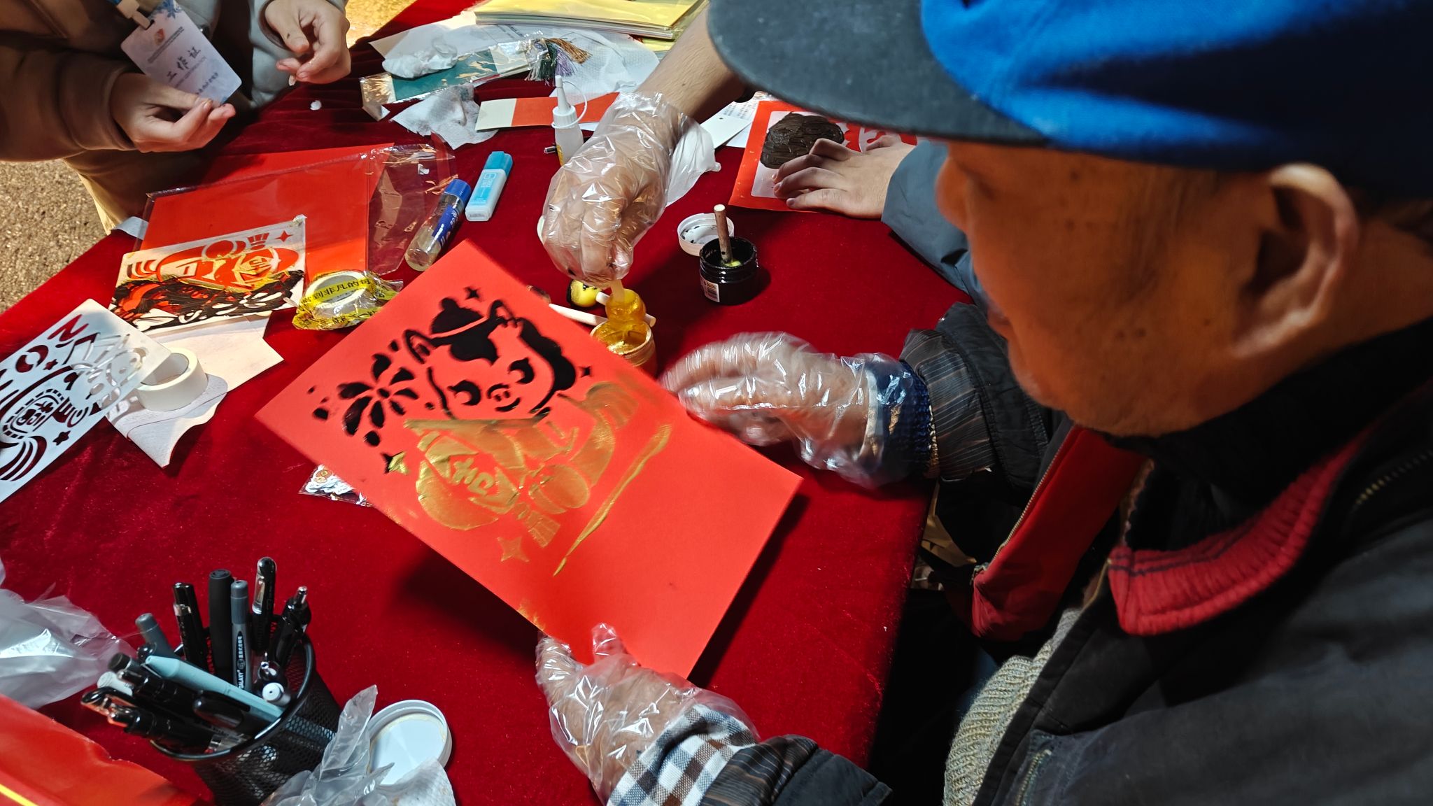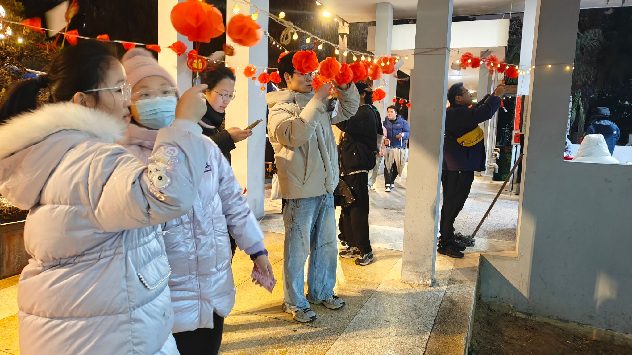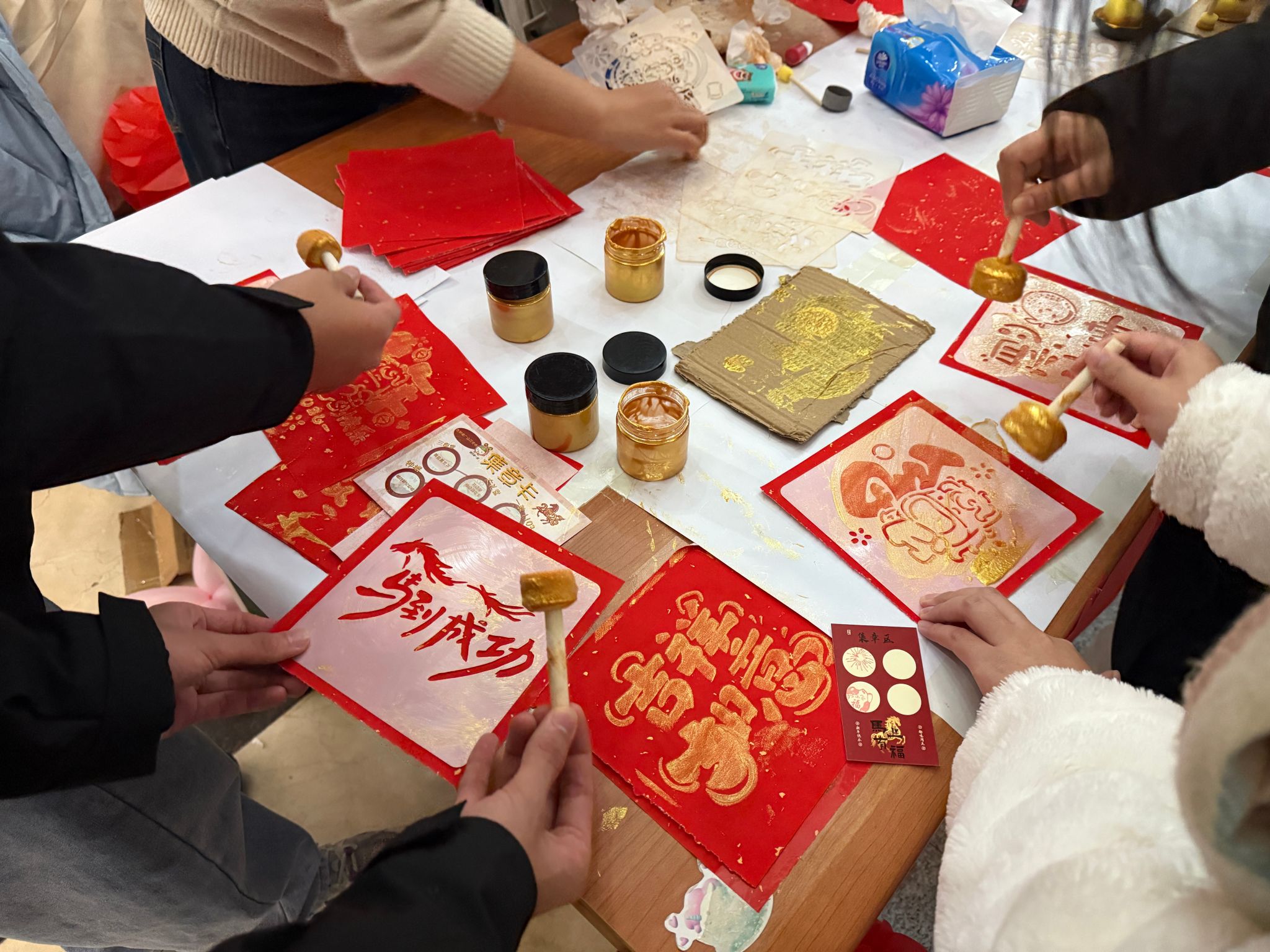 当晚,“楹墨纳福”环节墨香四溢,大家挥毫泼墨书写春联,一幅幅寓意吉祥的春联新鲜出炉,师生们手持作品拍照打卡,定格这份传统年味;“非遗拓印”也十分受欢迎,师生们挑选新年主题模板,在红纸上小心翼翼完成拓印操作,红色、金色的图案跃然纸上,沉浸式感受中华传统技艺的魅力。整场游园会以集章打卡为纽带,让师生在参与活动中感受书香与年味的交融,既收获了节日喜悦,又感受了年俗文化魅力。