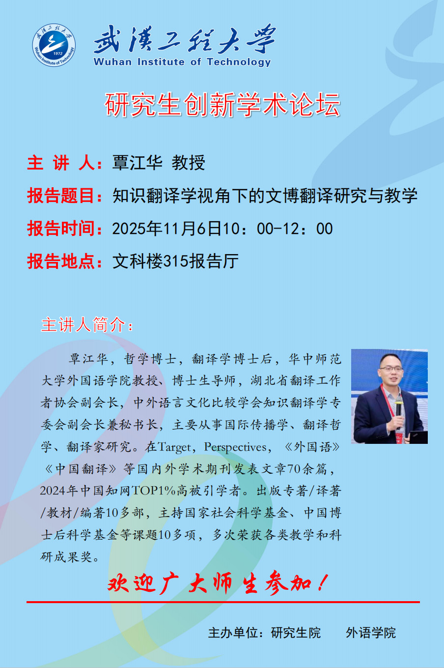 【研究生创新学术论坛】知识翻译学视角下的文博翻译研究与教学