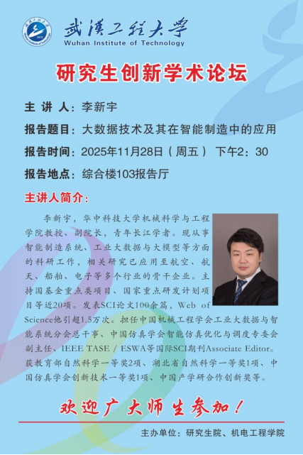 【研究生创新学术论坛】大数据技术及其在智能制造中的应用