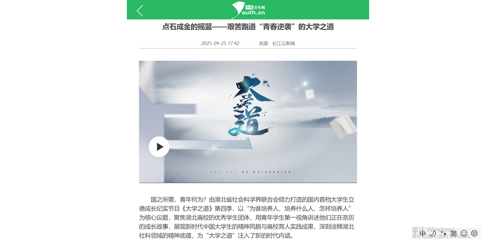 国之所需,青年何为?由湖北省社会科学界联合会倾力打造的国内首档大学生立德成长纪实节目《大学之道》第四季,以“为谁培养人、培养什么人、怎样培养人”为核心议题,聚焦湖北高校的优秀学生团体,用青年学生第一视角讲述他们正在亲历的成长故事,展现新时代中国大学生的精神风貌与高校育人实践成果,深刻诠释湖北社科领域的精神底蕴,为“大学之道”注入了新的时代内涵。