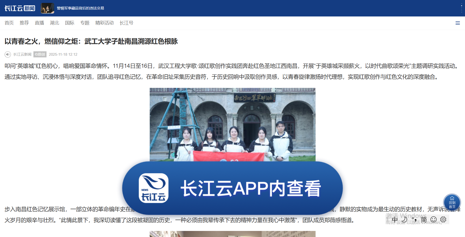 叩问“英雄城”红色初心,唱响爱国革命情怀。11月14日至16日,武汉工程大学歌·颂红歌创作实践团奔赴红色圣地江西南昌,开展“于英雄城采撷薪火,以时代曲歌颂荣光”主题调研实践活动。通过实地寻访、沉浸体悟与深度对话,团队追寻红色记忆,在革命旧址采集历史音符,于历史回响中汲取创作灵感,以青春旋律激扬时代理想,实现红歌创作与红色文化的深度融合。