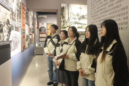 步入南昌红色记忆展示馆,一部立体的革命编年史在眼前徐徐展开。团队成员在一件件珍贵展品前驻足凝视——泛黄的文件、斑驳的枪械,静默的实物成为最生动的历史教材,无声诉说着烽火岁月的艰辛与壮烈。“此情此景下,我深切读懂了这段被凝固的历史,一种必须由我辈传承下去的精神力量在我心中激荡”,团队成员郑薇感悟道。