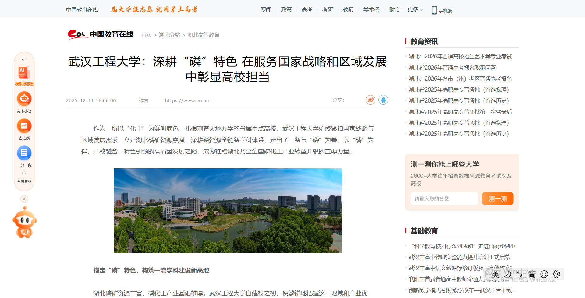 作为一所以“化工”为鲜明底色,扎根荆楚大地办学的省属重点高校,武汉工程大学始终紧扣国家战略与区域发展需求,立足湖北磷矿资源禀赋,深耕磷资源全链条学科体系,走出了一条与“磷”为善、以“磷”为伴、产教融合、特色引领的高质量发展之路,成为推动湖北乃至全国磷化工产业转型升级的重要力量。