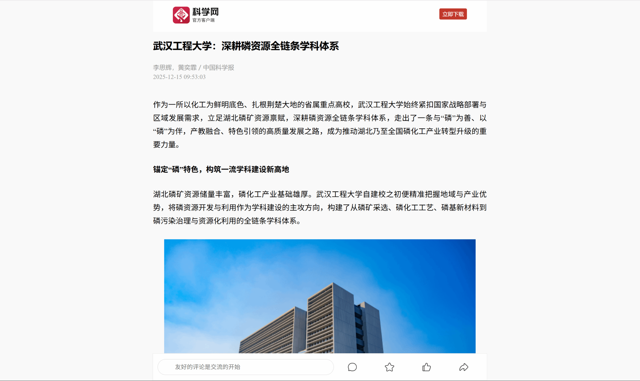 作为一所以化工为鲜明底色、扎根荆楚大地的省属重点高校,武汉工程大学始终紧扣国家战略部署与区域发展需求,立足湖北磷矿资源禀赋,深耕磷资源全链条学科体系,走出了一条与“磷”为善、以“磷”为伴,产教融合、特色引领的高质量发展之路,成为推动湖北乃至全国磷化工产业转型升级的重要力量。