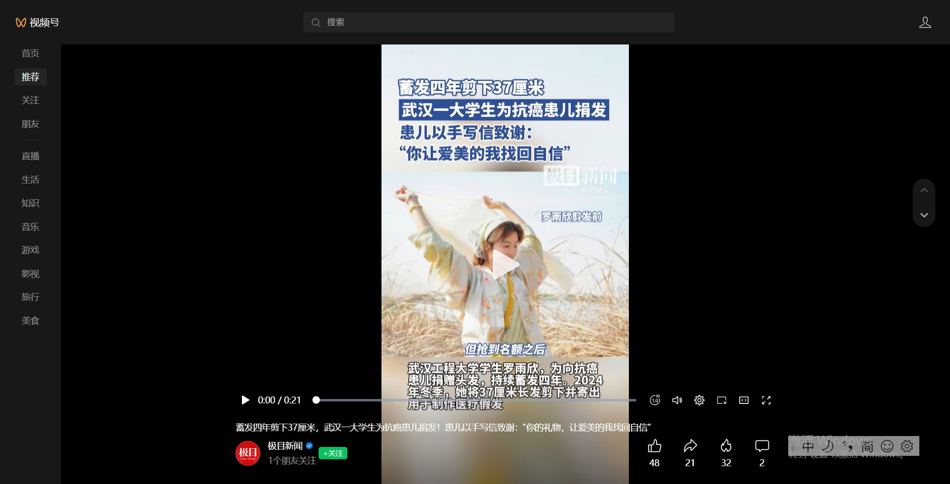 【极目新闻视频号】蓄发四年剪下37厘米,武汉一大学生为抗癌患儿捐发!患儿以手写信致谢:“你的礼物,让爱美的我找回自信”