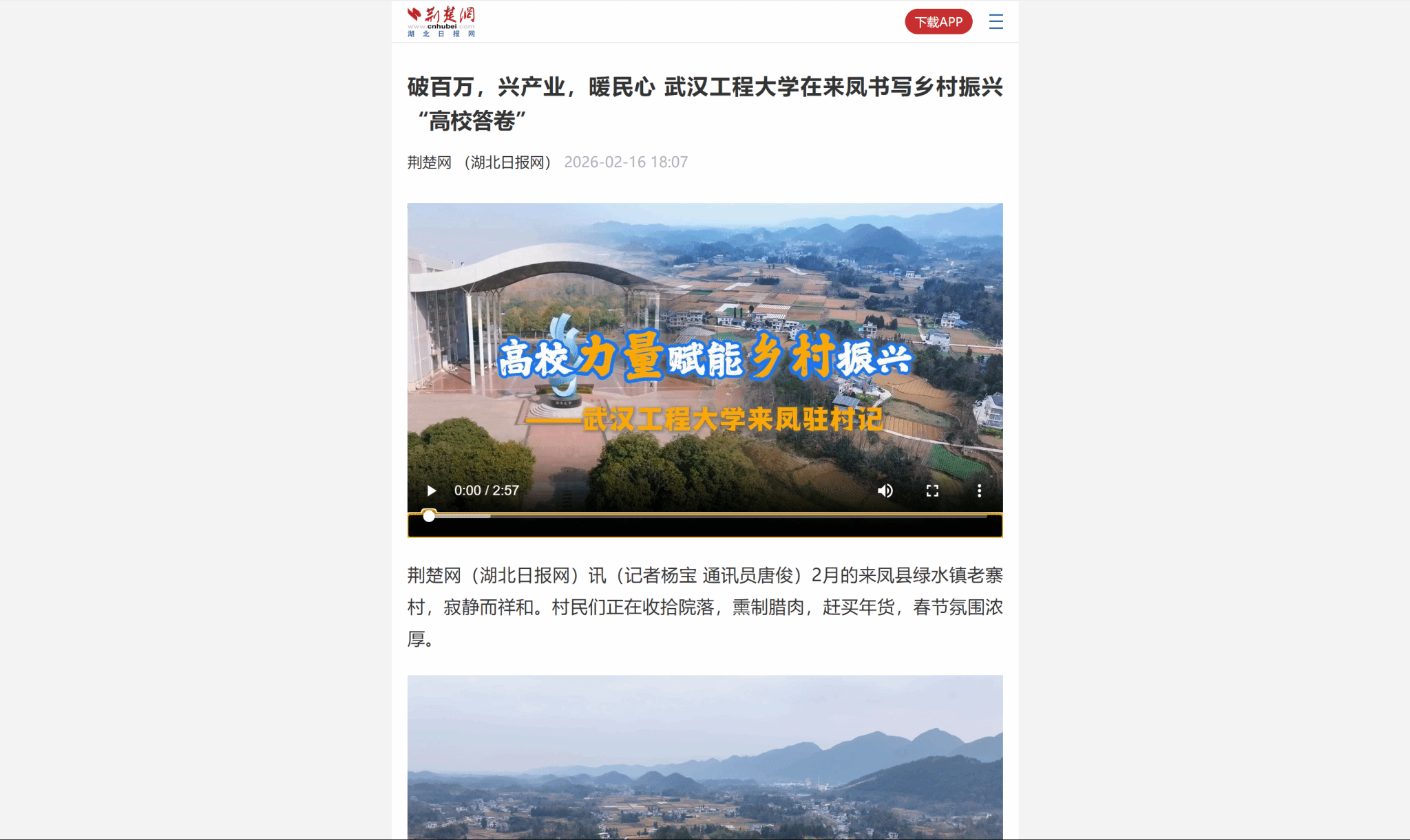 荆楚网(湖北日报网)讯(记者杨宝 通讯员唐俊)2月的来凤县绿水镇老寨村,寂静而祥和。村民们正在收拾院落,熏制腊肉,赶买年货,春节氛围浓厚。