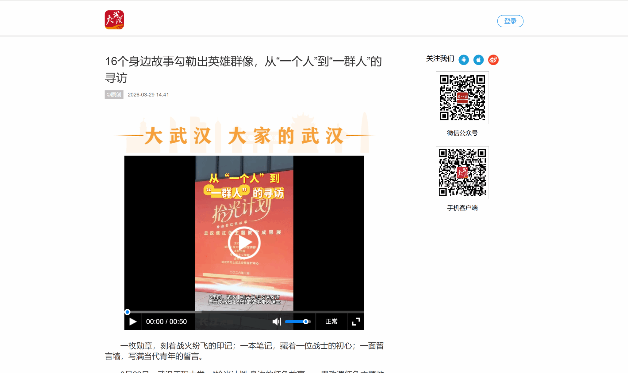 3月29日,武汉工程大学,“拾光计划·身边的红色故事——思政课红色主题教学成果展”现场,16个从时光深处打捞出的红色故事静静铺展。展览将持续整个清明时节。