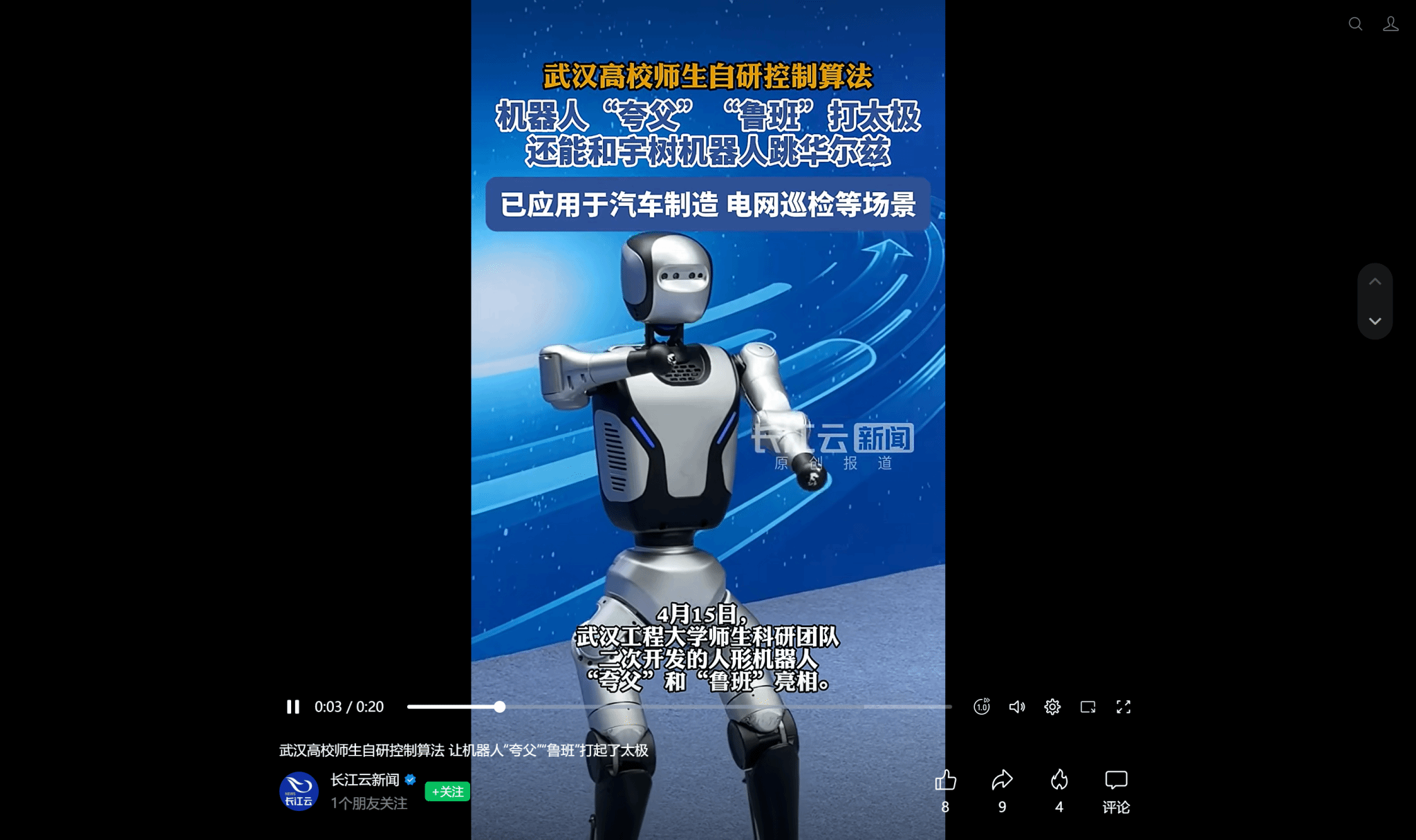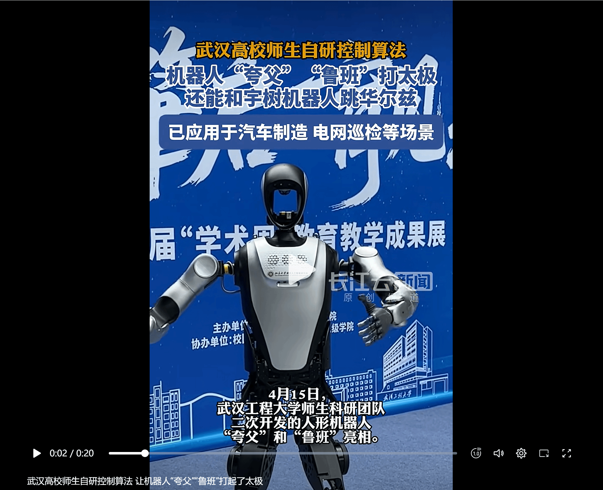 【长江云新闻】武汉高校师生自研控制算法 让机器人"夸父”鲁班”打起了太极
