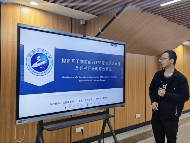 会上,六位研究生依次登台,围绕环境污染健康效应、生物医药、绿色冶金及土壤修复等领域分享了最新研究成果,其中涉及环境污染物与神经退行性疾病关联、肿瘤靶向基因治疗、稀土生物浸矿机制、解磷微生物代谢调控、肝癌外泌体功能解析以及磷石膏资源化利用等前沿方向。报告内容翔实、学科交叉特色鲜明,充分展现了学院研究生扎实的科研素养与创新活力。在场师生围绕研究思路与应用前景展开深入交流,现场学术氛围浓厚。