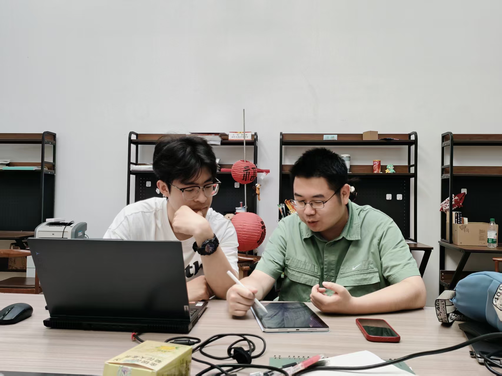 实验室搬到“双创”大楼后,集体氛围更加浓厚。本科生与研究生同桌而坐,分享零食、交流想法,轻松、开放、包容的环境让创新火花不断迸发。不同专业的学生在此找到归属感,也让极客棱次方真正成为一个凝心聚力、共同成长的创新共同体——成员们在这里不仅是并肩作战的队友,更是互相扶持、携手前行的家人。