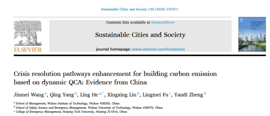 本网讯(通讯员 于怡迪)近日,管理学院青年教师汪金美在国际权威期刊《Sustainable Cities and Society》上,发表题为 Crisis resolution pathways enhancement for building carbon emission based on dynamic QCA: Evidence from China 的学术论文。