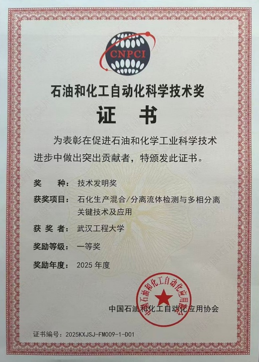 本网讯(通讯员 姚贞建 朱丽娜)3月21日,2025年度中国石油和化工自动化行业科学技术奖与专利奖奖励大会在江苏常州盛大召开。由武汉工程大学洪汉玉教授牵头,联合清华大学深圳国际研究生院、江苏麦赫物联网科技有限公司、应城市新都化工有限责任公司、珠海九通水务股份有限公司等单位共同完成的成果“石化生产混合/分离流体检测与多相分离关键技术及应用”获中国石油和化工自动化行业技术发明一等奖。全国共20家牵头单位获全国一级行业协会发明一等奖,我校项目名列该奖第9位。主要完成人:洪汉玉、姚贞建、叶亮、冯先成、陈艳菲等。