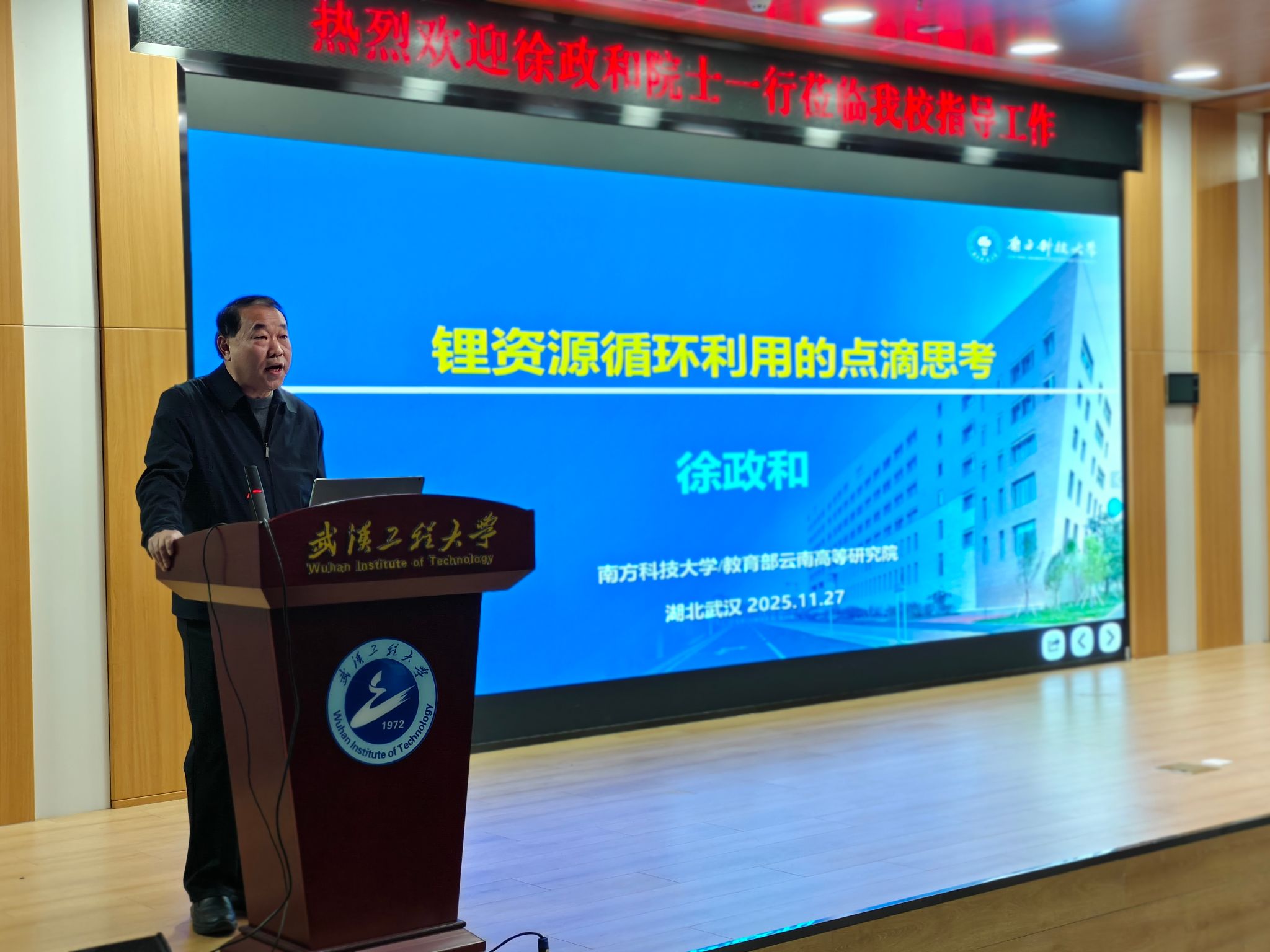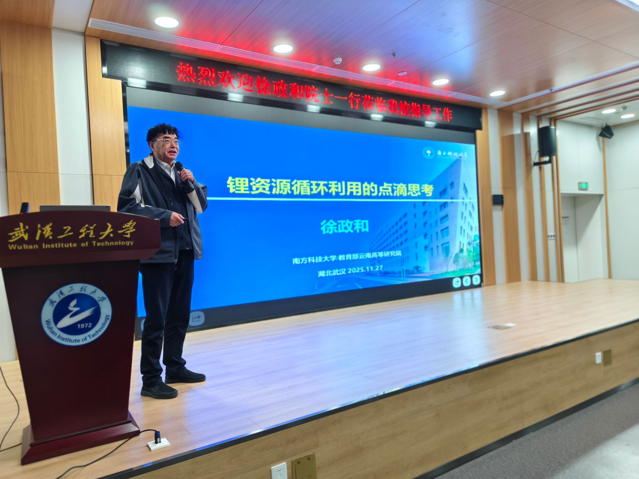 徐政和院士在综合楼报告厅作了题为《锂资源循环利用点滴思考》的学术报告。报告从全球锂资源的分布格局与需求趋势切入,系统梳理了矿石提锂、盐湖提锂及退役电池回收锂等领域的最新研究进展。报告内容既包含了高容量、高选择性、高回用性的吸附材料的制备和高通量、低成本、环保的吸附体系构建等研究工作,还包含了退役电池可控爆破提锂机理、方法与实践进展等。从科学机理、方法开发、成果应用等多方面总结了近期锂资源循环利用技术的关键突破。