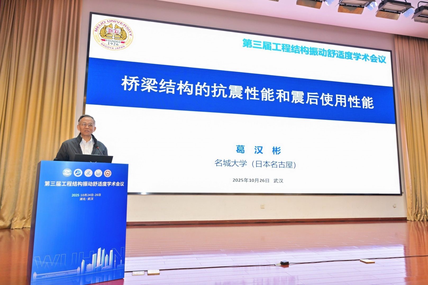 本网讯(通讯员 吴志峰)10月24日至26日,第三届工程结构振动舒适度学术会议在武汉隆重举行。大会由中国振动工程学会人因振动工程专业委员会主办,武汉工程大学、华中科技大学、同济大学和新疆大学联合承办。来自全国73家高校、科研院所、设计院以及企业同仁近200名参会代表齐聚一堂,围绕“以人为本”的工程结构振动舒适度主题展开深入交流与务实合作,共同探讨前沿研究成果与工程应用实践,推动相关技术的发展与推广。