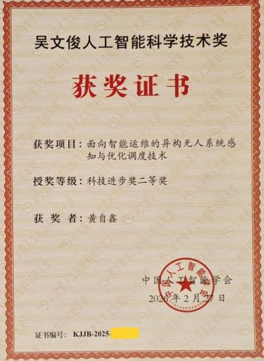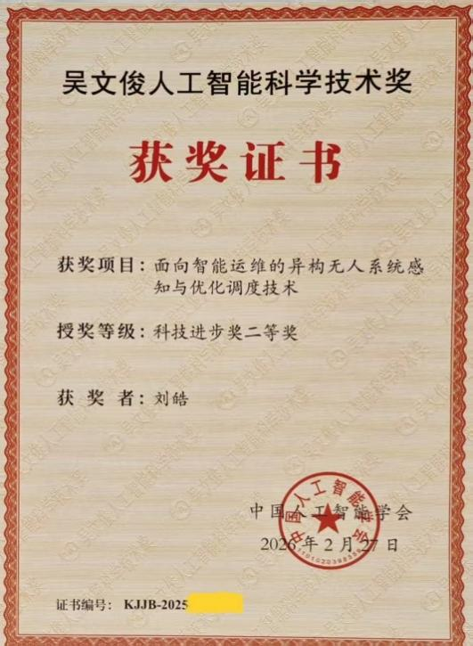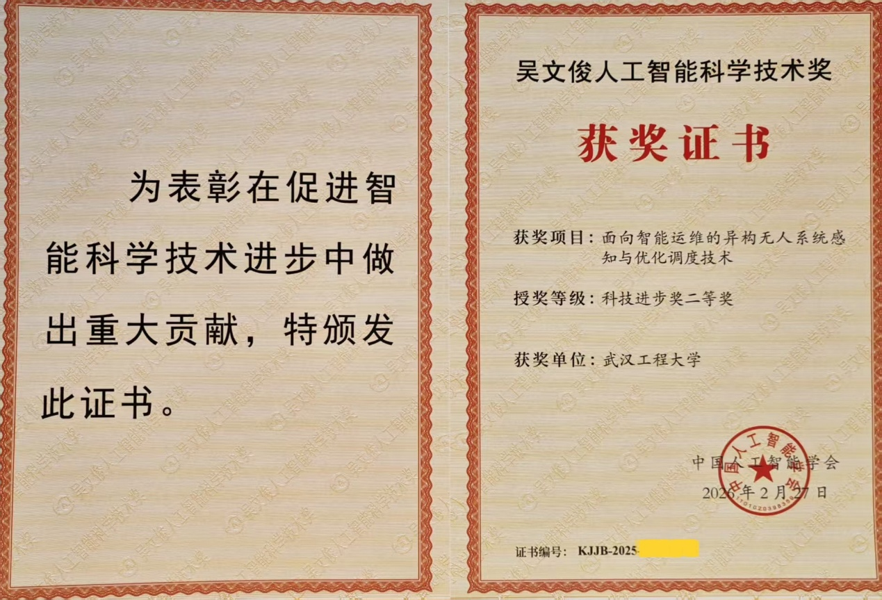 本网讯(通讯员 刘皓 朱丽娜)3月29日,2025吴文俊人工智能创新大会暨第十五届吴文俊人工智能科学技术奖颁奖典礼在江苏常州召开。由我校化工智能控制与化学具身机器人团队(团队负责人:黄自鑫教授)联合北京理工大学、国网山西省电力有限公司孝义市供电分公司、浙江浙能数字科技有限公司、浙江和朴实业有限公司、国网山西省电力有限公司吕梁供电分公司等单位共同完成的成果“面向智能运维的异构无人系统感知与优化调度技术”获吴文俊人工智能科学技术奖科技进步二等奖。我校主要完成人为电气信息学院教师黄自鑫、刘皓。