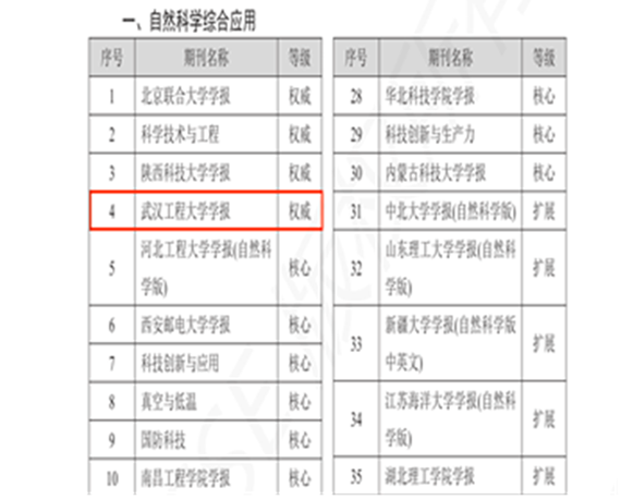 本网讯(通讯员 张媛媛 张瑞)近日,《中国应用型期刊评价研究报告(2025版)》(CACJ)正式发布,《武汉工程大学学报》被评为中国应用型权威期刊(自然科学综合应用类)。