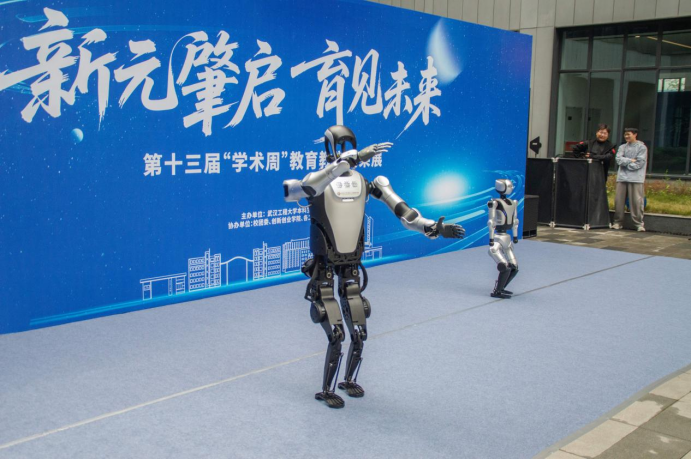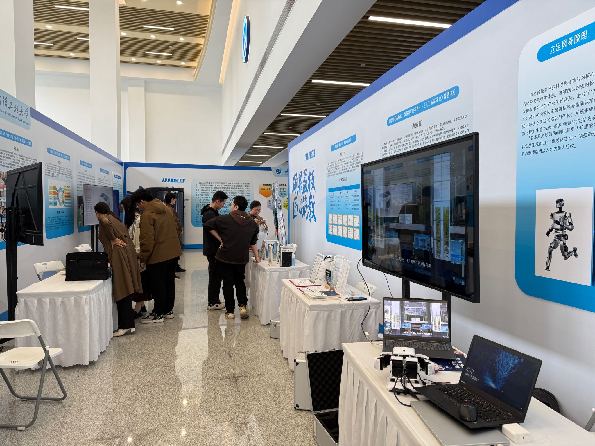 开幕式上我校师生团队带来了精彩的机器人表演,充分彰显出我校具身智能跨学科教学平台建设成效,依托完整的机器人教材、课程体系,让学生在仿真设计、实体调试、多机协同中完成全链路训练。充分展现了我校学子的创新精神与实践能力。
