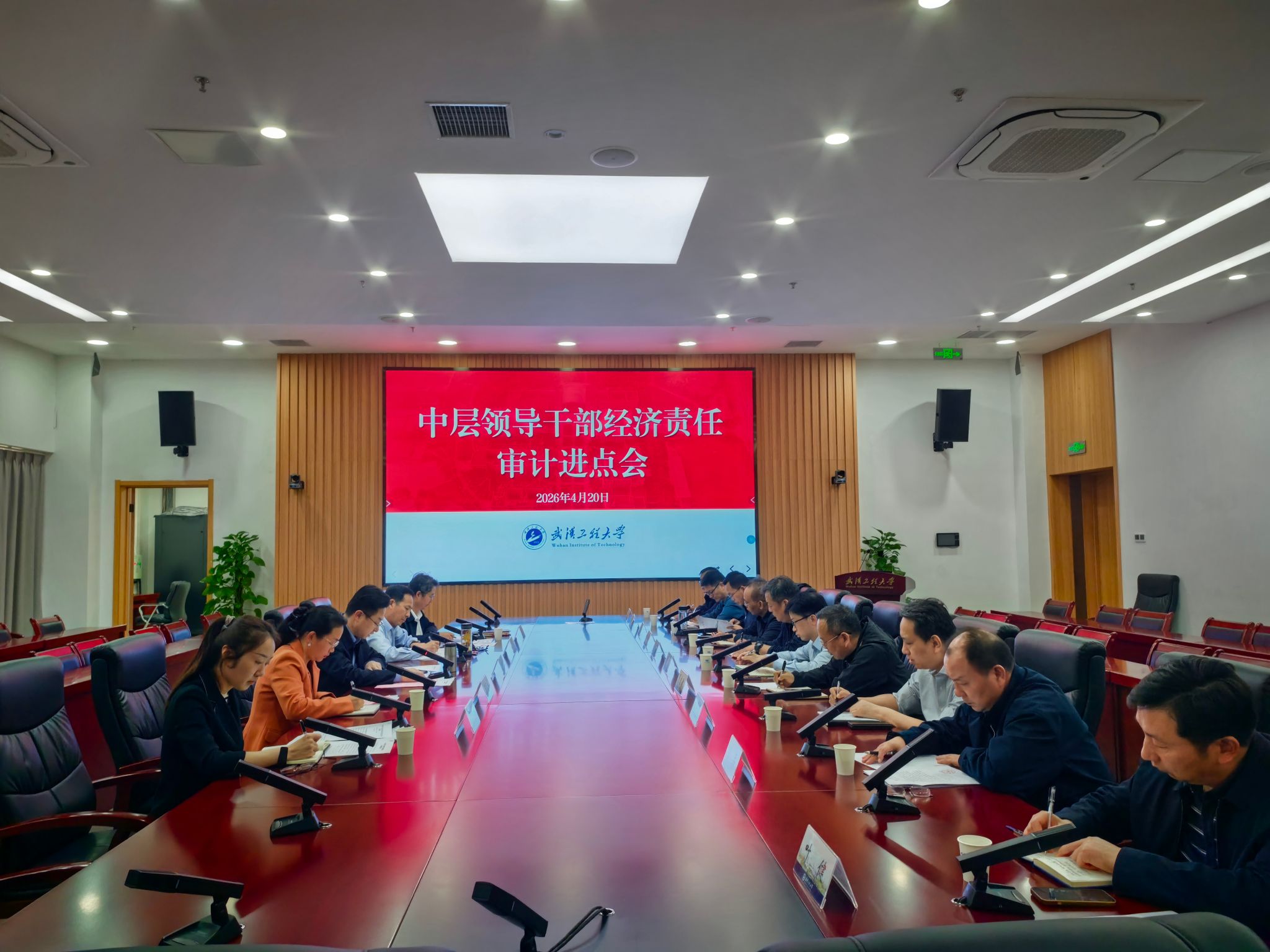 本网讯(通讯员 李国君)4月20日下午,学校在综合楼103会议室召开中层领导干部经济责任审计进点会,安排部署本轮中层干部经济责任审计工作。校党委副书记、校长张彦铎主持会议,校党委常委、副校长马小龙出席会议,党委组织部、审计处相关负责同志和本轮审计涉及单位主要负责人以及审计领导干部参加会议。