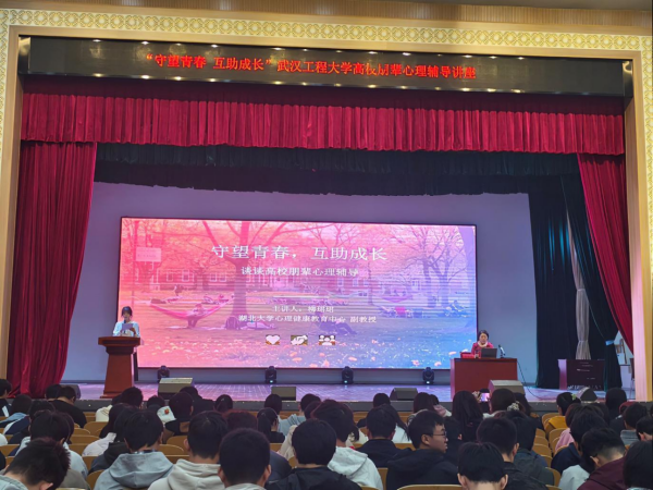 本网讯(通讯员 夏添)10月30日下午,由校党委学工部、心理健康教育中心主办,土木工程与建筑学院承办的“守望青春,互助成长”朋辈心理辅导主题讲座在武昌校区大礼堂举行。本次讲座特邀湖北大学心理健康教育中心副教授柳珺珺主讲,武昌校区本科生、研究生新生500余人参加。