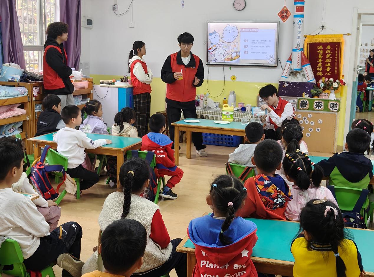 清明节祭扫活动结束后,许志伟志愿服务队与工大幼儿园结对开展化学小课堂志愿服务活动。