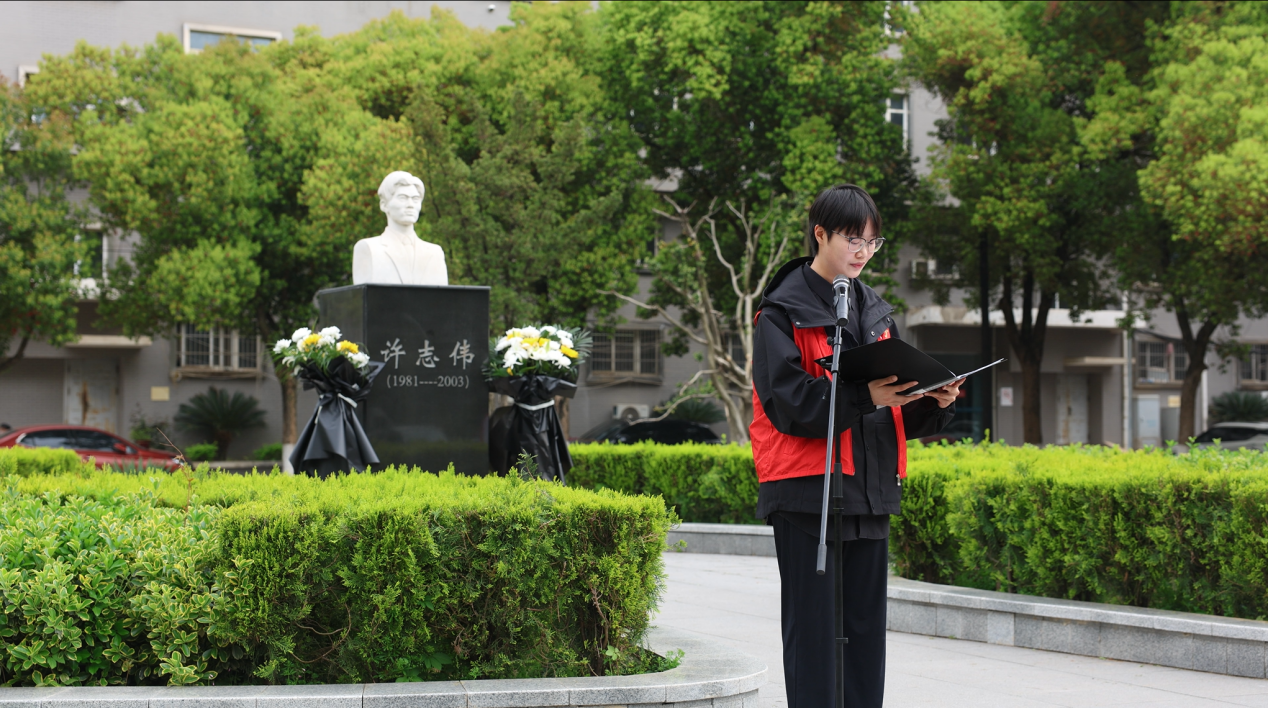 学生代表杨秋月分享了自己在许志伟志愿服务队成长经历,并向全体同学发出倡议:要以更加坚定的理想信念、更加扎实的行动担当,传承践行许志伟精神,让英雄精神在服务国家发展、奉献社会民生的青春实践中,绽放新时代的璀璨光芒!