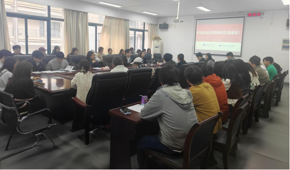 本网讯(通讯员 张师嘉)4月8日上午,环境生态与生物工程学院联合化工与制药学院、化学与环境学院在四教4306会议室成功举办光谷生物城“访企拓岗”座谈交流会暨就业推介会。环生学院党委副书记郑冬洁出席会议,三学院本硕毕业生辅导员及2026届本硕毕业生近50人参与。
