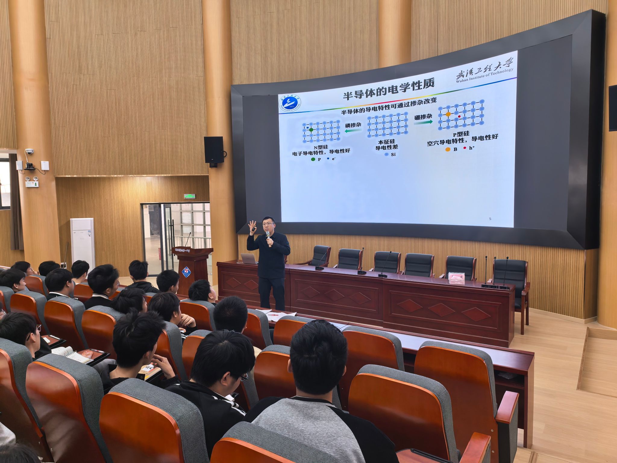 材料学院特聘教授杨思捷为嘉鱼一中的高一学生带来了一场生动精彩的科普讲座。讲座结合学科前沿与实际案例,深入浅出地讲解了相关科学原理与应用场景,引导学生感受科技魅力,增进对学校学科专业的了解。现场气氛热烈,同学们积极互动,不少学生表示对学校的专业产生了浓厚兴趣。