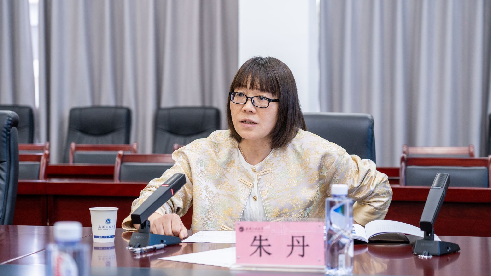 省教育考试院自考办主任朱丹总结讲话。她指出,武汉工程大学自学考试办学基础扎实、管理规范有序,本次申报的数字媒体艺术专业贴合产业发展趋势、市场需求明确。她希望学校以此次评审为新起点,持续强化专业内涵建设,严格规范招生宣传与办学管理,细化教育教学全流程管控,不折不扣落实自学考试各项政策要求,不断提升人才培养质量,为湖北省自学考试事业创新发展注入新动能。