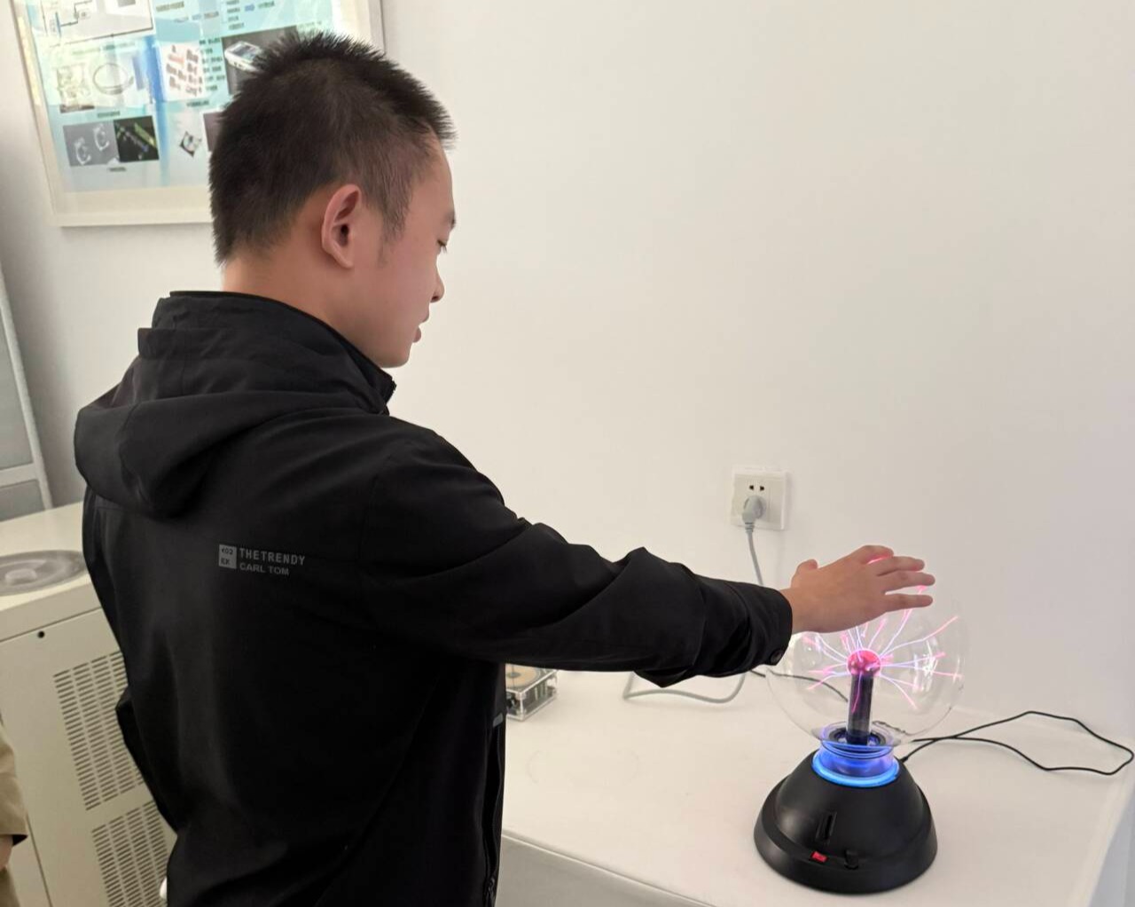 在A209展区,访客们通过实物陈列、动态演示、专人讲解等形式,直观了解了“先进等离子体技术与应用”等核心研究方向的科普化呈现。实验室科研人员用通俗语言讲解了“等离子体如何像‘魔法能量’一样改变材料性质”,并通过简易装置模拟了等离子体辅助制备新材料的关键环节-从气体电离到材料合成的简短过程,向大众介绍了其中的原理。