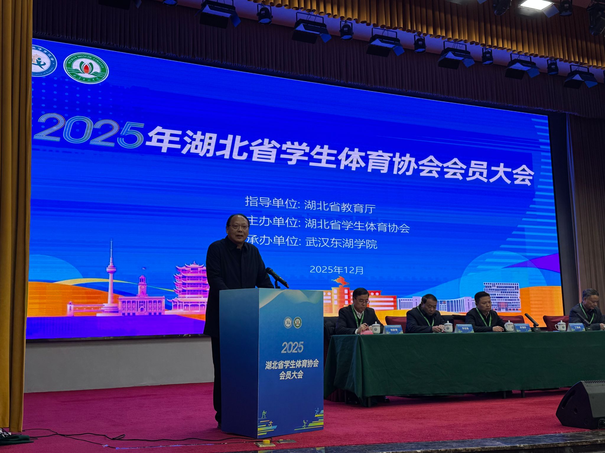 本网讯(通讯员 乐建军)12月27日,2025年湖北省学生体育协会会员大会在武汉东湖学院召开。中国学生体育联合会副主席华爱军,省教育厅体卫艺处处长丁雪峰,协会副理事长、武汉工程大学党委副书记李志旭,协会副理事长、武汉体育学院党委副书记刘彦博,协会副理事长、湖北民族大学副校长李军,协会副理事长、三峡大学副校长黄悦华,协会副理事长、江汉大学副校长李卫东、武汉东湖学院校长黄泽波等领导嘉宾出席大会,全省各市州教育局、普通高校及215名会员单位代表出席会议。我校体育部书记、主任、湖北省学生体育协会副秘书长万莉莉,湖北省学生体育协会棋牌单项委员会副主任乐建军参加了本次会议。大会由武汉体育学院党委副书记刘彦博主持。