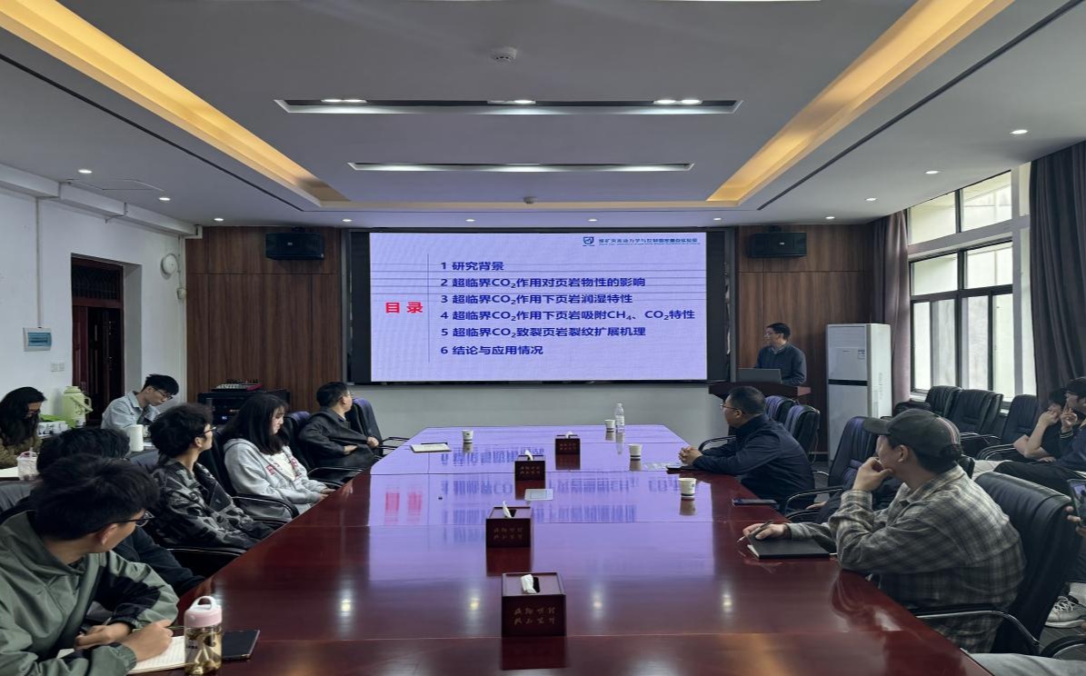 姜永东教授围绕超临界CO₂在页岩气开发领域的核心研究,系统讲解了超临界CO₂对页岩物性、润湿特性、气体吸附规律及致裂扩展机理的影响,详细介绍了相关技术的研究成果与工程应用情况,为在场师生开展相关领域研究提供了清晰的思路与理论参考