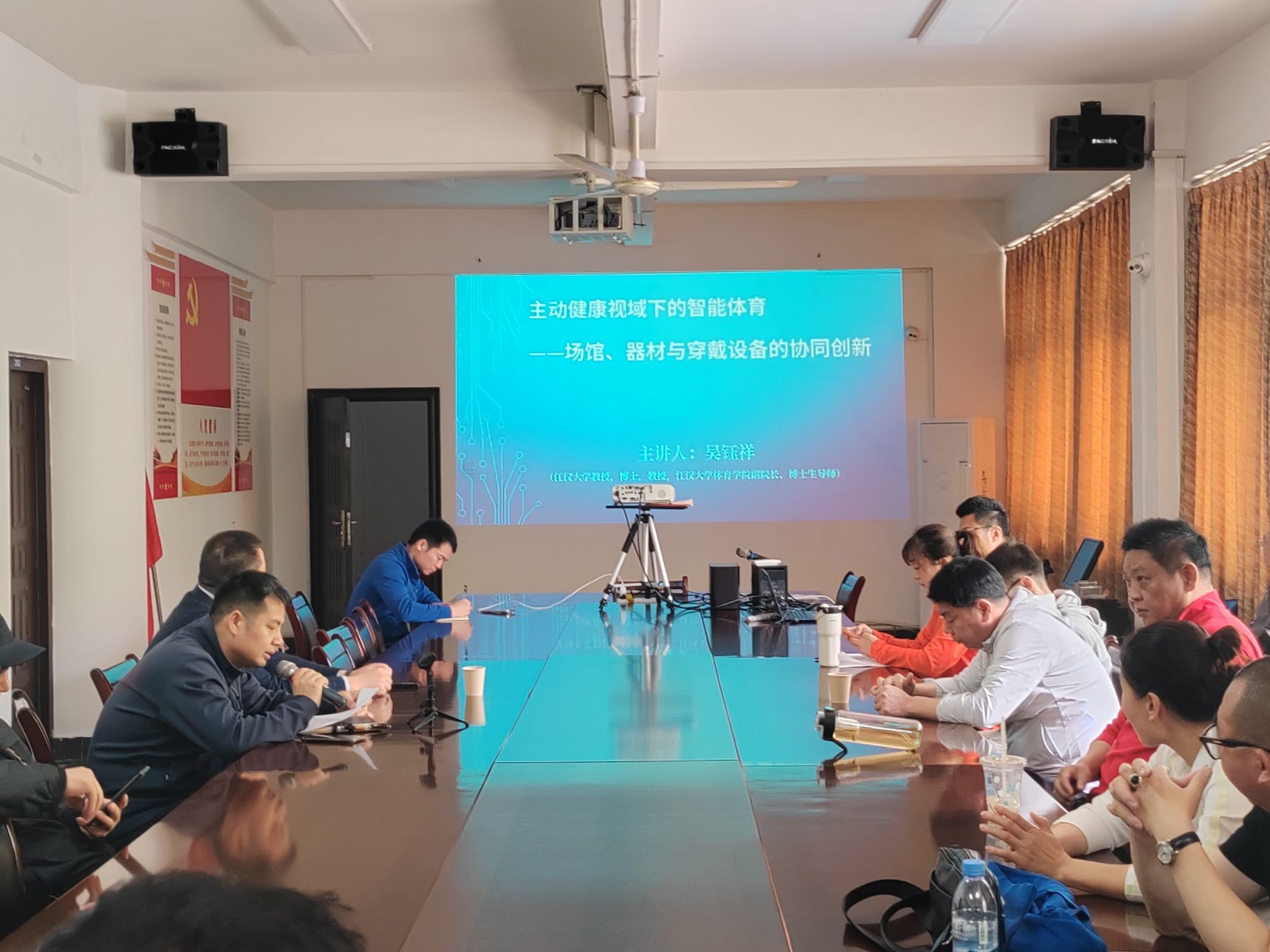 本网讯(通讯员 陈琰)4月17日上午,体育部第十三届“工大学术周”第二场专家讲座在体育部二楼会议室201成功举办。特邀江汉大学吴钰祥教授作专题报告,主题为主动健康视域下的智能体育——场馆、器材与穿戴设备的协同创新。本次讲座由体育部教学主任贺新家主持,体育部全体教师、体育经济管理专业研究生及热爱体育文化的本科生到场聆听学习。