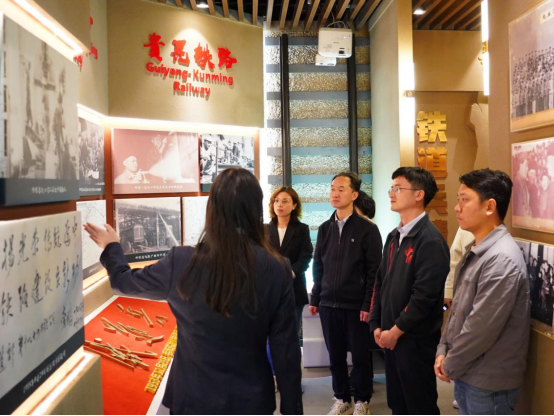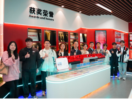 在中铁十一局第六工程有限公司文化展厅,通过讲解员的详细解说,师生一行进行了一场生动的“大国重器”思政课。从“序厅”“铁道兵风采”“历史沿革”“发展成就”“金色闪耀”到“亲切关怀”,六个区域系统勾勒出一幅从铁道兵精神到现代企业辉煌的壮阔画卷,大国重器千吨级高铁箱梁运架一体机“昆仑号”是综合实力的硬核代表。研究生“微特先锋”代表张余豪同学表示,通过今天实践和参观,既感受到了历史的厚重,又体会了前沿科技带来的震撼,从铁道兵时期的肩扛手抬,到如今驾驭智能化装备建设国家动脉的自信,这场与“大国重器”的对话传承了一种不怕困难、不畏艰险、勇攀高峰的精神。